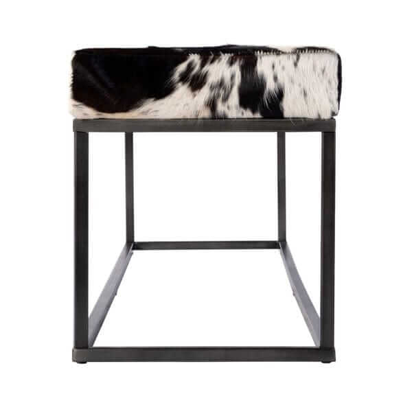 Make a bold statement in any room with the Butler Specialty Stinson Black & White Leather & Iron Accent Bench, where rustic charm meets modern sophistication. Crafted with a sleek iron frame and upholstered in premium black and white leather, this versatile piece combines industrial strength with refined comfort.
