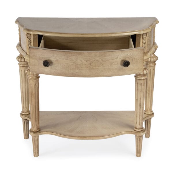 Butler Specialty Halifax Beige Console Table with Open Shelf – Elegant Demilune Entryway Accent