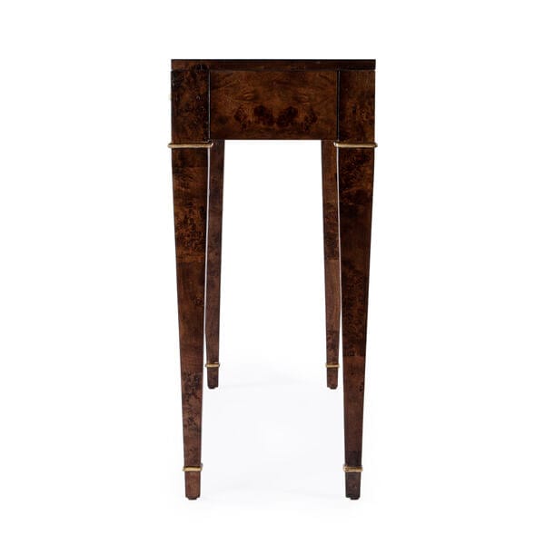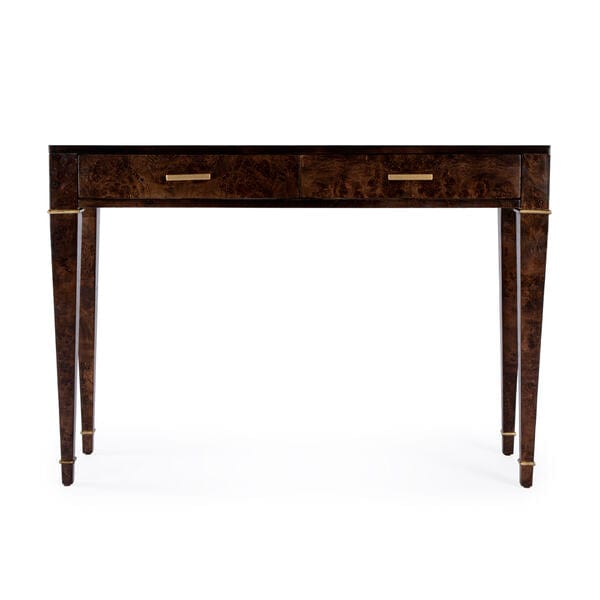 Butler Specialty Kai Dark Brown Burl Wood Console Table with 2 Drawers – Mid-Century Modern Elegance